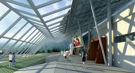 位于青山綠水間的廣州飛碟訓(xùn)練中心是廣州2010亞運會5個市屬新建場館之一,已于2010年4月底建成率先與市民見面。場館位于增城白水寨風(fēng)景區(qū)附近,距廣州市中心約90公里,與從化馬術(shù)比賽場、九龍湖高爾夫球場一起組成廣州北部的亞運組團(tuán)。亞運會期間,廣州飛碟訓(xùn)練中心將產(chǎn)生飛碟多向、飛碟雙向、飛碟雙多向男女共12枚金牌,賽后作為國家射擊隊及省射擊隊的冬訓(xùn)基地,并作為廣州市射擊射箭運動基地向公眾開放。場館設(shè)計以自然為主題,專注于體現(xiàn)飛碟射擊運動的本質(zhì),將建筑融入山地環(huán)境,倡導(dǎo)在大自然中運動的理念。