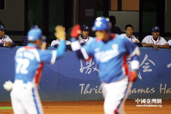 中華臺北隊擊球瞬間。(中國臺灣網 鐘寶華 攝)