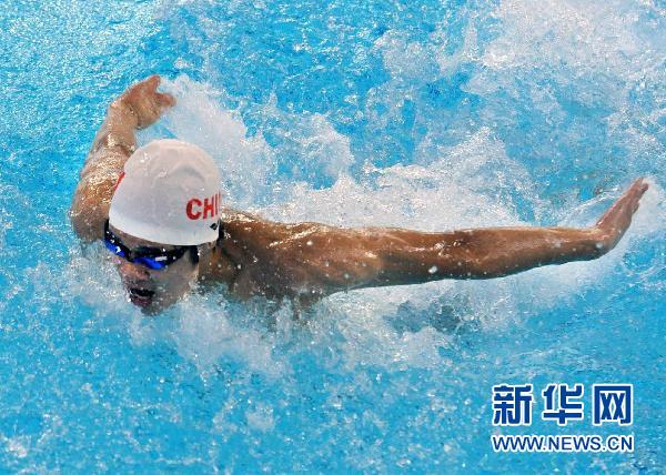 12月13日,中國選手林福榮在比賽中。當日,在廣州2010亞殘運會游泳男子S10級100米蝶泳決賽中,中國選手林福榮以1分02秒22的成績奪得金牌。新華社記者王頌攝