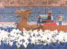 中共中央政治局常委、國(guó)務(wù)院總理李鵬的題詞是:“發(fā)展民族體育,建設(shè)偉大祖國(guó)。”