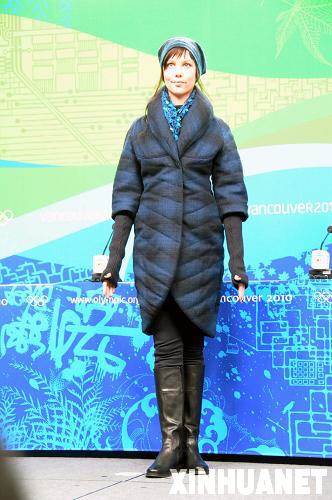 2月2日,冬奧會禮儀小姐在展示室外頒獎儀式上的服飾。當日,2010年溫哥華冬奧會組委會公布了頒獎臺和頒獎禮儀服飾。頒獎元素的設計體現了年輕、現代和加拿大西海岸的風格。新華社記者馬丹攝