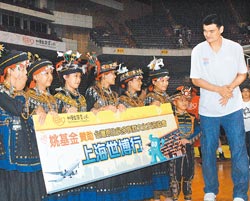 姚明代表姚基金贊助臺灣少數民族多族群文化交流協會四名小朋友前往上海觀看世博。(陳怡誠攝)