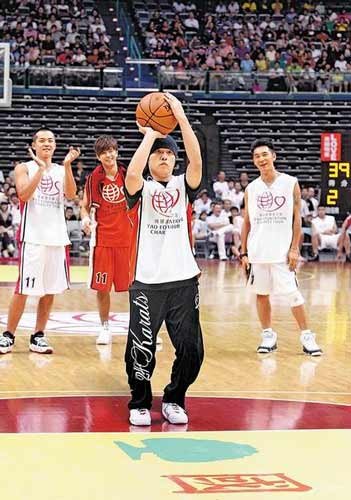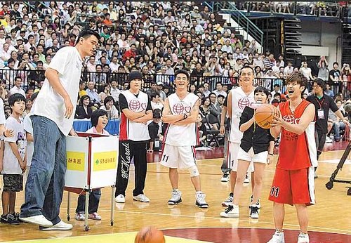 東方網7月29日消息:姚明登高一呼,周杰倫(周董)、羅志祥(小豬)昨率10名藝人在臺北參加“2010姚基金慈善之旅”臺北站慈善表演賽。周董、小豬在NBA球星面前不改愛秀個性,雖技不如人,但花招不少,逗得現場球迷笑聲不斷。