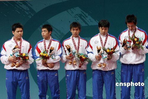 多哈當地時間十二月三日晚,中國男子乒乓球隊以三比零戰勝老對手韓國隊,獲得第十五屆亞運會乒乓球男子團體冠軍。中國臺北與中國香港隊獲得銅牌。