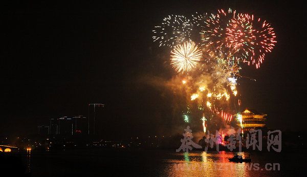 當晚的焰火燃放,從晚上8點正式開始,負責本次焰火燃放表演的是海陵區海唯商貿有限公司。公司負責人王春紅說,他們從事大型焰火表演工作已經有年頭了,在行業內部也頗有名氣,為了確保元宵節的焰火表演質量,過完年,他們就在張羅這件事。燃放的花炮都是年前專門從湖南瀏陽購置的,雖然價格不是特別昂貴,但品質都是一流的。他說,這一場表演和商業表演不同,是借機會向市民拜年,他們在準備時,也都特別賣力,負責安放的師傅忙碌了十幾天,就為這十幾分鐘。