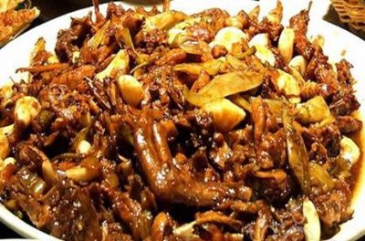 做檸檬鴨用料很講究,選的鴨子是1.5公斤左右的正宗谷糠喂大的土鴨或北京鴨。配料是陳年腌制的檸檬,另外還有酸蕎頭、酸辣椒、酸梅、豆腐乳、白糖、黃酒和鮮姜等。其味酸辣適宜,清新爽口,香而不膩,是一道極其開胃的菜。看其外觀,冒著油汁,金黃誘人;聞其香,檸檬與鴨肉香飄撲鼻;品其味,檸檬的酸香中透著梅子的甜味,微辣中藏著鴨肉的細膩。即便是吃到了配料,也覺得美味無比。鴨肉可以自己選擇,西洋鴨25元/斤,土鴨18元/斤,北京鴨15元/斤。大眾完全吃的起,追求高品位、高營養的朋友來到這也不會失望。