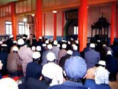 回族全民信奉伊斯蘭教,禁食豬肉 ,開齋節、古爾邦節、圣紀節是回族的三大節日;刈逵刑厥獾膯试崃曀,人死說無常,或說“冒臺” 。 死人謂亡人。一般行土葬,即不用棺槨盛,先將亡人置于水溜子上,用湯瓶沖洗,再纏以“可蕃”(白布)放入埋臺,舉行殯禮, 拉往墳地“刺亥兒”,墳丘砌成長方形墩,回族喪葬倡導速葬、薄葬;刈迥凶酉矏鄞靼咨蚝谏珶o檐帽,熱天則身穿白褂,外套黑馬甲,黑白分明,干凈利落;婦女戴蓋頭,不使頭發、耳朵、頸脖外露,以顯本分莊重。根據個人年齡和婚姻狀況,蓋頭有顏色區分,一般老年人戴白蓋頭,中年人戴黑蓋頭,青年女子或未婚女孩則戴綠蓋頭(綠色是吉祥色)。在城市里,除少數老年人戴蓋頭外,多數回族婦女戴白帽,或各色頭巾。