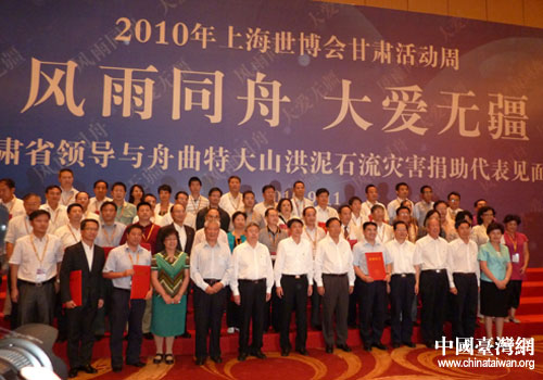 中國臺灣網9月15日舟曲消息 日前,在上海世博會甘肅活動周開幕式上,16家臺資企業和全國臺企聯發揚大愛無疆、愛心無限的精神,慷慨解囊,為甘肅舟曲捐款1780萬元、捐物150萬元。甘肅省省委書記陸浩、代省長劉偉平等領導會見了捐款企業代表并頒發捐款證書。