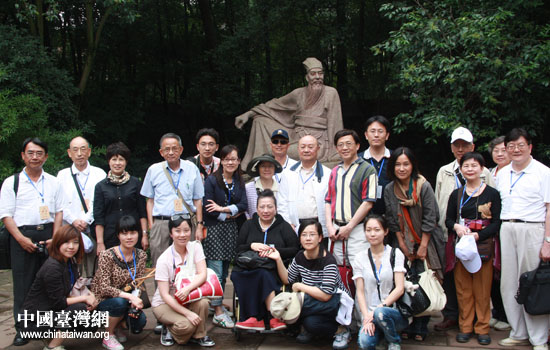 13日,情系巴蜀—兩岸文化聯(lián)誼行活動(dòng)走進(jìn)眉山三蘇祠。圖為臺(tái)灣嘉賓在蘇軾雕像前合影。(中國(guó)臺(tái)灣網(wǎng) 趙輝 攝)