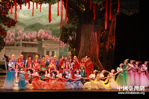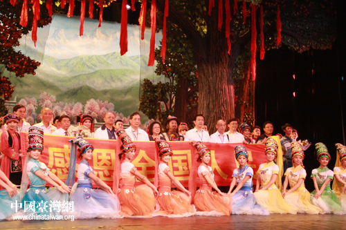 臺灣嘉賓團焦仁和團長等與演員合影留念(中國臺灣網 趙輝 攝)
