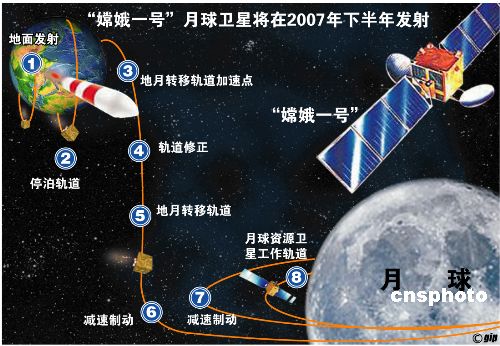 圖表:中國探月計劃首期“繞月探測衛星”發射步驟示意圖