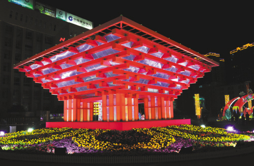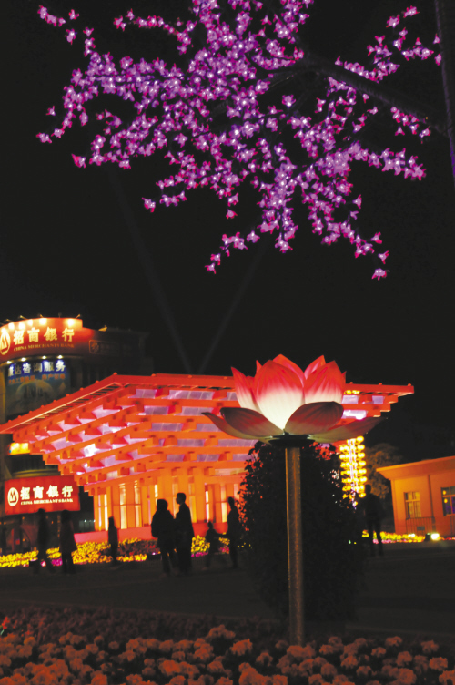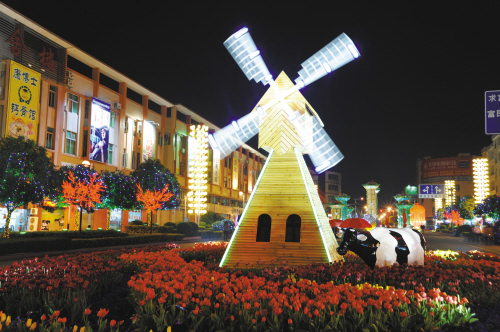 ■大朗花街微縮中國館夜景。(通訊員 葉紹求 攝)