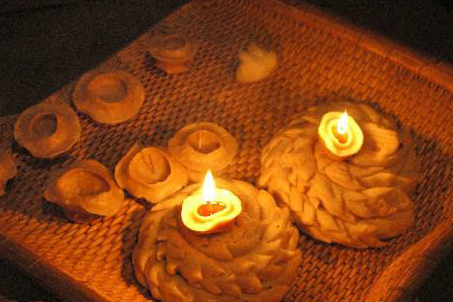 面燈也叫由面盞,是用面粉做的燈盞,多流行于北方地區。面燈的形式多種多樣,有的做燈盞十二斗(閏年十三只),盞內放食油點燃,或將面燈放鍋中蒸,視燈盞滅后盞內余油的多寡或蒸熟后盞中留水的多少以卜來年十二個月份的水、旱情況,這在科學不發達的年代,其做法是可以理解的。如清乾隆年間陜西《錐南縣志》載牶“正月十五,以蕎麥面蒸盞燃燈,按十二月,以卜雨降。”表達了人們祈求風調雨順的愿望。面燈在正月十六落燈之日煮或蒸而食之。目前農村仍有此俗。