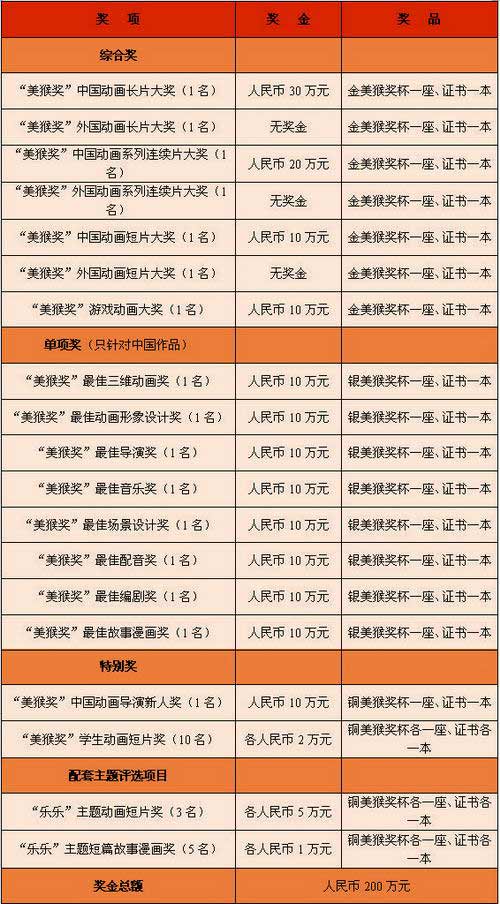 2009“美猴獎”分為七項綜合大獎、八項單項、兩項特別獎,具體獎項設置如下:
