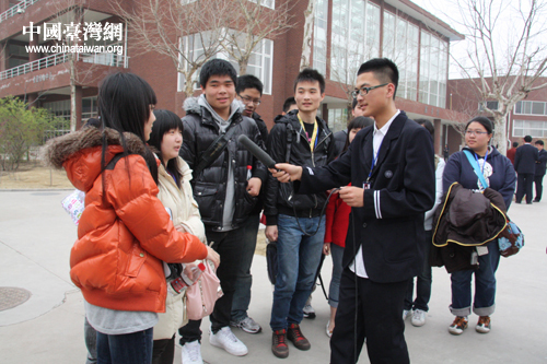 接受濰坊一中同學(xué)的采訪(中國(guó)臺(tái)灣網(wǎng) 楊永青 攝)