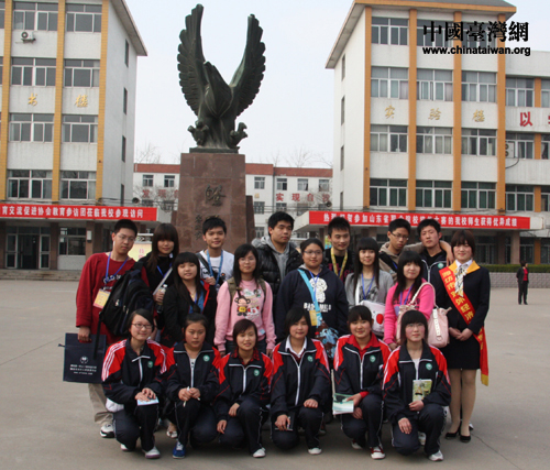 在濰坊一中的操場(chǎng)上合影留念(中國(guó)臺(tái)灣網(wǎng) 楊永青 攝)
