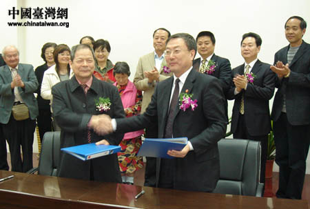 開幕式后,山東濰坊市第一中學和臺北縣南山中學的領導就校際交流簽約