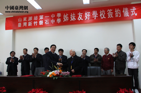 2010年4月19日上午,山東濰坊一中和臺灣新竹磐石中學舉行了姊妹友好學校簽約儀式。(中國臺灣網(wǎng) 楊永青 攝)