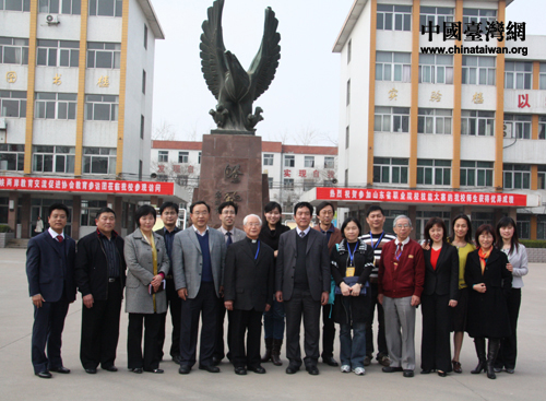 在濰坊一中的操場上合影留念(中國臺灣網(wǎng) 楊永青 攝)