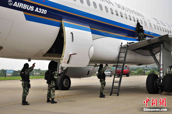 9月12日下午,廣州白云機(jī)場(chǎng)亞運(yùn)安保力量重裝集結(jié),舉行大規(guī)模的反恐綜合演練。中新社發(fā) 云軒 攝