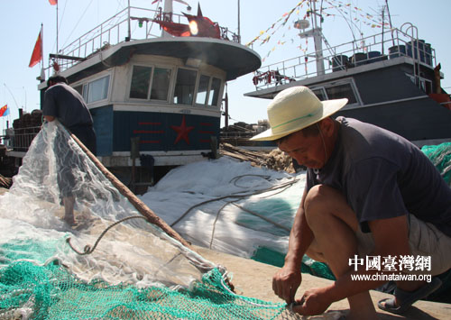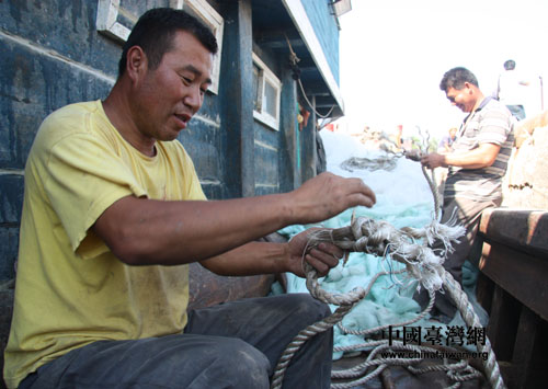 在東營港以捕魚為業的漁民,據悉,東營港經濟開發區已經規劃了新的更大規模的捕魚避風港免費提供給漁民。(中國臺灣網 董潔 攝)