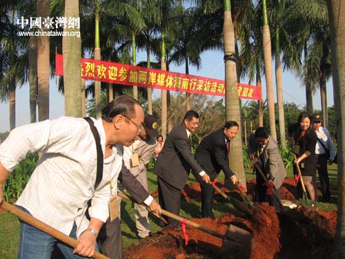 中國臺灣網11月30日海口消息 昨天上午,參加“兩岸媒體海南行”的40余名兩岸記者共同在海口萬綠園植樹,表達兩岸新聞界保護環境,造福后代人的美好愿望,并預祝兩岸媒體的友誼像記者林一樣,根深葉茂、萬古長青。(李杰)