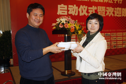 12日晚“全國網(wǎng)絡(luò)媒體遼寧行采訪活動”,在遼寧大廈正式啟動。同時(shí)也是來自中國經(jīng)濟(jì)網(wǎng)的影子與接待方李顯鵬的生日,這讓兩人既興奮又驚奇。驚喜之余,兩人端起壽面碗,互祝生日快樂!(中國臺灣網(wǎng) 孫金誠 攝)