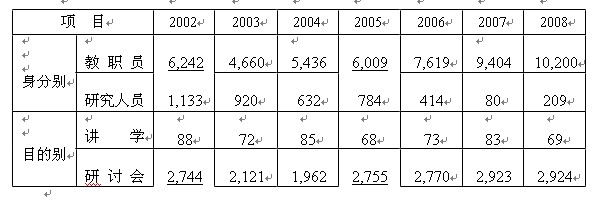 大陸學者赴臺講學或研修停留時間不得逾1年,參加研討會總停留期間每年不得逾4個月。自2002年至2008年底止,審核同意大陸學者赴臺共計: