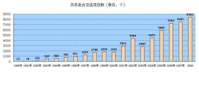 臺灣自一九八七年開放大陸探親后,即頒發(fā)兩岸地區(qū)教育交流的若干規(guī)定,而大陸教育部“教育委員會”也有相關(guān)規(guī)定負責(zé)管理大陸人士來臺教育參訪,并協(xié)助臺灣人士赴大陸的學(xué)校、教育機構(gòu)學(xué)習(xí)、進修、講學(xué)、研究,及與大陸進行教育交流、合作等相關(guān)事宜。近年來,兩岸文教活動交流活動頻繁,人數(shù)屢創(chuàng)新高。依據(jù)統(tǒng)計數(shù)據(jù)顯示,大陸地區(qū)人士來臺從事文教活動由2005年的12,315人、2006年14,775、2007年16,226到2008年的20,546(大陸工作委員會,2009)。依照此一趨勢看來,兩岸交流活動日益趨多,有增無減。