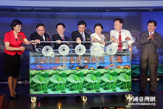 6月7日上午,湖南省省長周強(中)、國務院臺辦副主任葉克冬(左三)等在湖南省湘潭市共同啟動“2009海外臺商湖南行”活動。(中國臺灣網 鐘寶華 攝)
