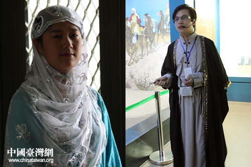 身著回族傳統(tǒng)服飾的博物館工作人員。(中國臺灣網(wǎng) 董潔 攝)