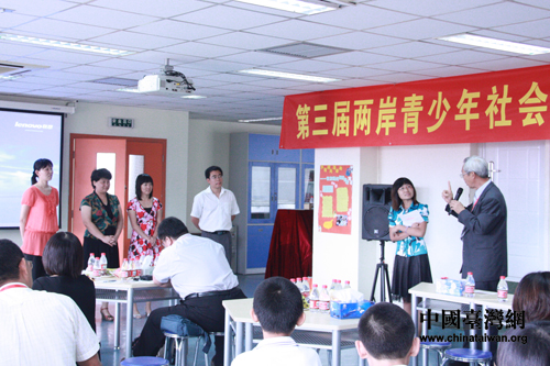 中國臺灣網8月18日北京消息 8月17日下午,參加第三屆兩岸青少年社會教育研討會的代表與中關村第四小學的師生聚集一堂,互動交流。