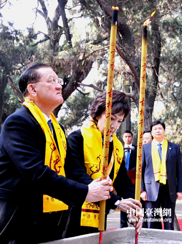 中國國民黨榮譽主席連戰(zhàn)先生與夫人在黃帝陵前敬香