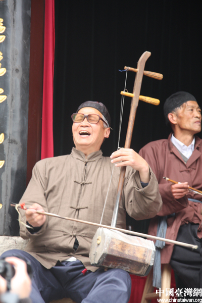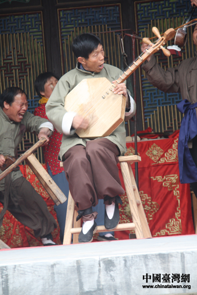 關中老腔演員神情投入的表演(中國臺灣網 何建峰 攝)