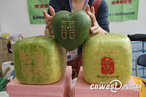 西部網訊(記者 李楠 張喆)走進西洽會臺灣展館,一個方形的西瓜吸引了所有人的注意!安灰獎!只看不賣的!”記者剛想摸摸,就被展位負責人呵止。