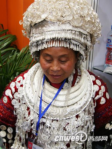 記者了解到,這位婦女來(lái)自貴州省,是苗族人。她還告訴記者一個(gè)有關(guān)苗族人的銀飾風(fēng)俗。據(jù)她介紹,苗族的女孩從出生那天起家人便會(huì)每年為其打制一枚銀飾,一年一件積累起來(lái),待到少女將要出嫁時(shí),便能湊齊這樣一身的銀飾了。