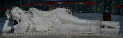 天津玉佛禪寺前身為“法藏寺”,始建于周隋之間(約公元557年~581年)毀于清末民初。2003年8月,天津市宗教局批準(zhǔn)重建該寺,更名為玉佛禪寺。寺院占地寬廣,院內(nèi)翠柏蒼松,枝葉茂密,綠蔭昂然。寺院主體中軸對稱、回廊連接、翹角飛檐、朱漆彩繪。延中軸線依次建有山門、天王殿、大雄寶殿、臥佛殿等;兩側(cè)為鐘鼓樓、文殊、普賢、觀音、地藏四大菩薩殿等。值得一提的是,寺院全堂佛像均為緬甸玉石雕刻而成,且尊尊佛像雕刻精美,姿態(tài)威武,氣魄雄偉,比例勻稱,盡顯神通靈感,別具特色。