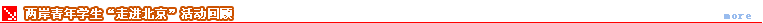 在北京大學(xué)生志愿者的邀請(qǐng)下,臺(tái)灣學(xué)子走進(jìn)了北京的家庭,他們一起度過(guò)了充實(shí)而快樂(lè)的一天。在傳統(tǒng)胡同里的北京家庭,在現(xiàn)代社區(qū)中的北京家庭,在郊... |