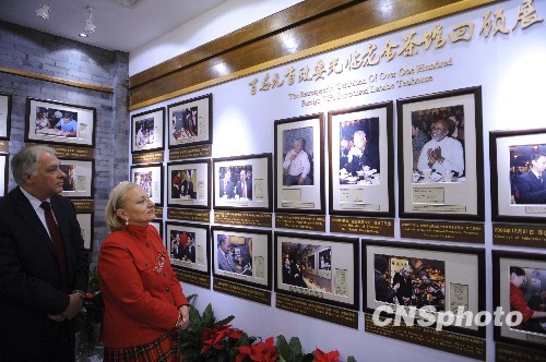 11月26日,外國駐華使節(jié)在北京老舍茶館參觀“百名元首政要光臨老舍茶館”回顧展。當日,來自26個國家的駐華使節(jié)應(yīng)邀出席了該活動。