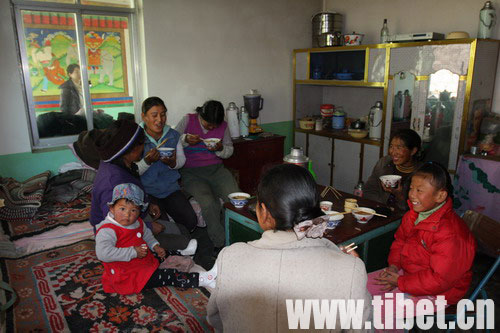 現在家里養著三四頭牛,在山坡上還有6畝地,種著青稞和麥子。自己只是放放牛,地都包給來西藏打工的漢族人種了。每年產的糧食,大部分都是自己吃,肉、菜可以到不遠的集上去買。生活上非常方便,生了病可以到不遠處的衛生院去看,一般的普通病是免費的,有了大病,國家給報60%。