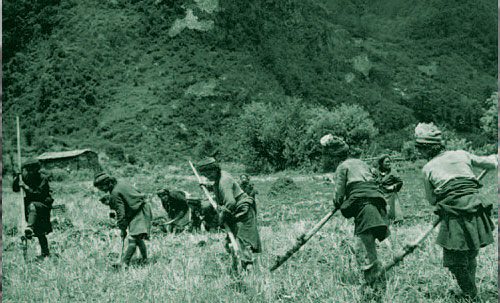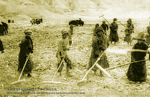 山南錯那地區落后使用木棍和鐵鋤翻耕土地