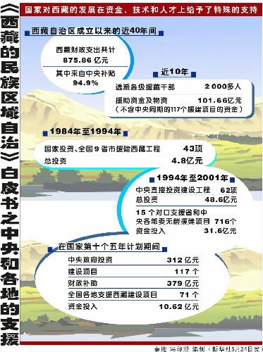 1965年西藏實行民族區域自治制度以來,西藏人民在中央政府的領導下,以主人翁的姿態積極參與管理國家和地方事務,充分行使憲法和法律賦予的自治權利,投身西藏的現代化建設,實現了西藏社會的跨越式發展,深刻地改變了西藏的貧窮落后面貌,大大提高了自身的物質文化生活和政治生活的水平。