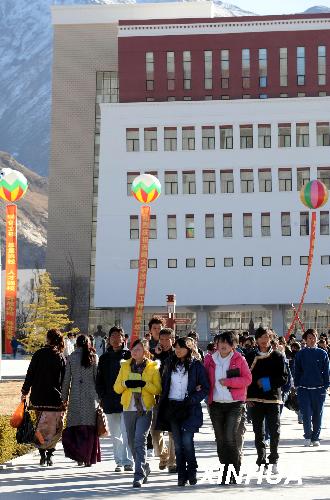 資料圖片:2008年12月16日,西藏大學校園內的莘莘學子。當日,西藏大學改擴建工程竣工暨進入“211工程”重點建設行列慶祝大會在拉薩舉行。新華社記者 格桑達瓦 攝