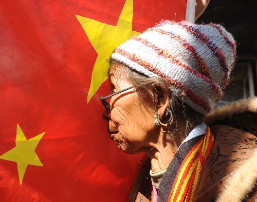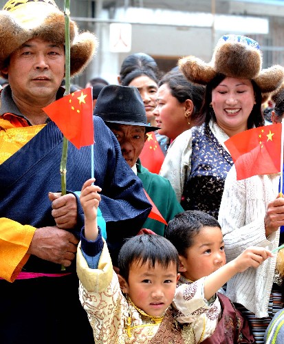 “北京是我心中的太陽,F在,我的心里就像被太陽照進了一樣!”次仁曲珍老阿媽凝望著五星紅旗,眼里閃爍著晶瑩的淚花。是啊,是炙熱的太陽驅散了高原千百年來的黑暗,給我們送來了光明和溫暖;是鮮艷的五星紅旗引領我們在有中國特色、西藏特點的發展路子上闊步前進。