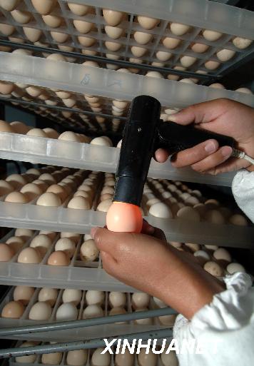 資料圖片:西藏林芝地區(qū)孜熱藏雞孵化基地的工作人員在查看藏雞蛋受精情況(2007年5月25日攝)。新華社記者 格桑達(dá)瓦 攝
