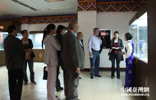 西藏博物館導(dǎo)游給參觀的外國友人講解(中國臺(tái)灣網(wǎng) 李典典 攝)