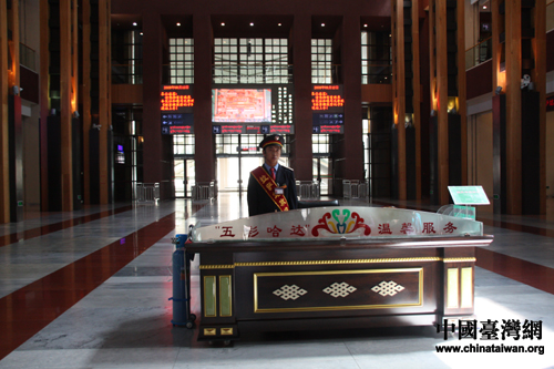 采用木質環保材料的候車大廳(中國臺灣網 李典典 攝)