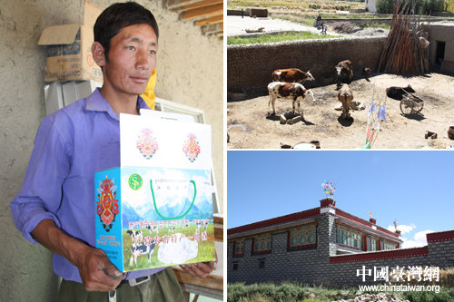 右上圖為牧民養(yǎng)的奶牛,右圖二為具有后藏特色的民居。(中國(guó)臺(tái)灣網(wǎng) 李典典攝)