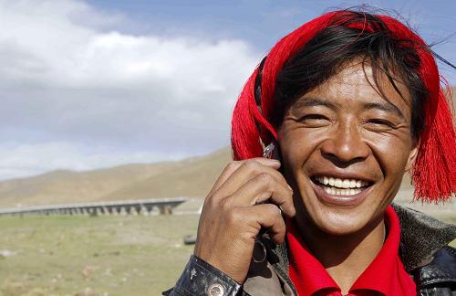 資料圖片:這是生活在海拔4500多米的藏北牧民在打電話(2008年6月26日攝)。3月2日,中國國務院新聞辦公室發布的《西藏民主改革50年》白皮書說,1959年至2008年,西藏生產總值由1.74億元增長到395.91億元,按可比價格計算,增長65倍,年均增長8.9%。 新華社記者 普布扎西 攝