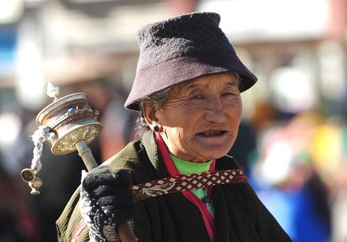 資料圖片:一位藏族老阿媽在拉薩轉經(2007年11月拍攝)。 新華社記者 索朗羅布 攝